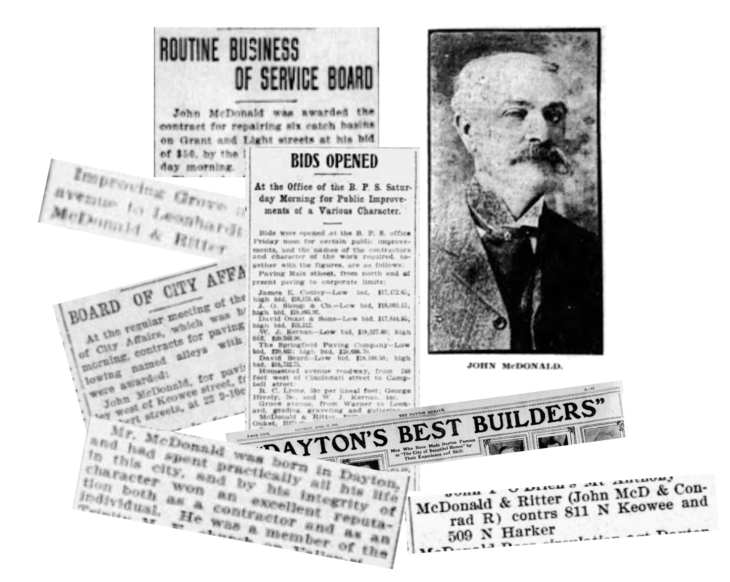 With his son Nathan and son-in-law Conrad, John built a sterling reputation for quality and honesty. By 1909, McDonald and Ritter Contractors were recognized as one of Dayton’s top contractors, completing major projects that shaped the city, including excavation, street work, cement and gravel operations, and general construction.